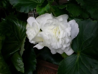 Een ijverige bloeier voor de zomer. Houdt van humusrijke grond en halfschaduw, 's winters vorstvrij de knollen overwinteren in droge turfmolm. Dubbele, grootbloemige, zuiver witte knolbegonia. De bekende als volle pioenrozen pronkende bloemen verschijnen onophoudelijk in de zomermaanden.