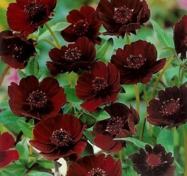 Een cosmea, die niet groeit uit zaad en dus met worteldelen wordt vermeerderd. De plant wordt 50-70 cm hoog en bloeit met donkerbruine, open bloemen (wat u gewend bent van de gewone cosmea). Het blad is minder fijn van structuur. En dan de geur…: deze bevestigt de verwachtingen van de kleur: een chocoladegeur! Graaf de verdikte worteldelen in de herfst weer uit en bewaar ze (opgepot) op een koele, vorstvrije plaats.