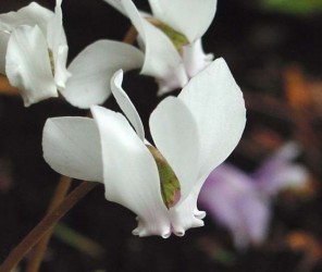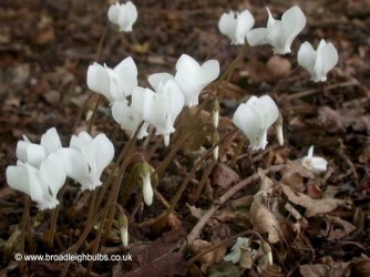 Het is niet zo’n kunst om zeldzame cyclamenknollen aan te bieden. Wel of niet uit de natuur geroofd, is er wereldwijd een levendige handel. Jammer dat maar een deel van de knollen het echt goed doen in de tuin. Wij hebben voor u de oplossing: elk soort dat we leveren wordt in Nederland in een pot gekweekt en heeft al blad (gegeven), zodat we hergroei durven garanderen! Bij het uitplanten de potgrond uit de potjes vermengen met de grond in de omgeving anders kunnen de knollen te nat blijven. HERFSTBLOEIEND. Zeer winterharde tuincyclaam. De bloemen zijn helder wit. Het gemarmerde, klimopvormige blad is een sieraad!