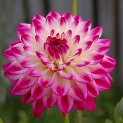 Een zgn. Decoratiefbloemig Type, d.w.z. met brede lintbloemen. Deze dahlia lijkt rechtstreeks ontsnapt uit de snoepwinkel... De felle kleuren vrolijken elke hoek gegarandeerd op! Fel purperroze, naar het centrum ivoorwit. Een beauty (die blijkens de naam) kennelijk naar ome Henk is genoemd.