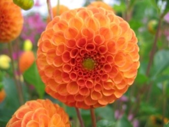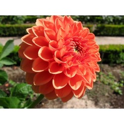 De koning van de zomerbloeiende knollen! De grote verscheidenheid aan kleur en vorm, de adembenemende volmaakte vorm en de goede houdbaarheid op de vaas maakt deze bloem zo populair! Pomponbloemige dahlia's geven een overvloed van wat kleinere, bolronde bloemen, samengesteld uit strak gerangschikte, brede lintbloemen. Helderoranje met dieporanje centrum.