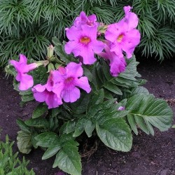 Een gemakkelijke tuin- of potplant met fris en mals, varenachtig blad die vanaf de zomer gaan bloeien op stengels van 40-60 cm hoog. De bloemen hebben een fraaie trompetvorm in lilaroze kleur. We kochten extra grote wortelstokken zodat je een robuste plant kunt verwachten. Geef de planten een flinke laag winterdek, goed gedraineerde grond, dan overleven ze vrijwel zeker de vorst.