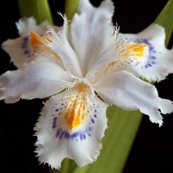 Op een hoogte van 50 cm bloeien de fantastische witte bloemen met warmgeel spoor op de “lip” en paarse stralen rondom het geel. We leveren de bontbladige en de groenbladige variëteit. Ook zonder de prachtige bloemen geeft het blad een frisse aanblik in de tuin! Geef ze een plekje in de zon of halfschaduw en zorg voor een humeuze, vochthoudende grond.