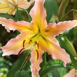 De lelie spreekt al eeuwen tot de verbeelding van de mensheid: in de bijbel als symbool van de schoonheid, in de Middeleeuwen als symbool van maagdelijke reinheid. De bloem geeft op een halfschaduwplaats in uw tuin een effect van verstilde schoonheid .… Spectaculair in de tuin: in vruchtbare, humeuze grond kan deze lelie menshoogte bereiken! De trossen kleuren vanuit het centrum van geel naar lilaroze.