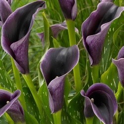 Het gespikkelde, pijlvormige blad vormt een sierlijke basis voor de kokervormige bloemen. Deze zijn fantastisch blauwviolet van kleur, in het centrum donkerder dan aan de buitenkant. Hoogte 60 cm.