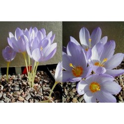 LEVERBAAR IN AUGUSTUS-SEPTEMBER, MET MOGELIJKE UITLOOP NAAR OKTOBER. Herfstkrokus met vrij ronde bloemvorm, verrassend rijk bloeiend.