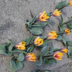 Stevige tulpen, enkelbloemig, meestal rond van bloemvorm. Vroegbloeiend. Na de Prinses Irene kon deze beauty niet uitblijven: geel met paarse vlammen, de stelen zijn dieppaars gekleurd!