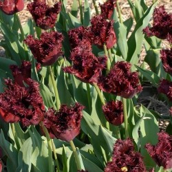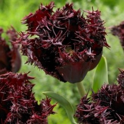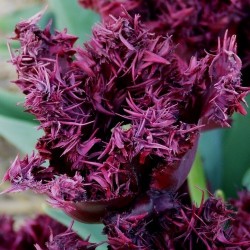 Ouderwetse "bewerkte" tulpen zijn weer helemaal in en exclusief! Een bijzonder speels effect: de bloemen zijn langs de randen gekarteld en iets lichter getint. EXCLUSIEVE TULP! De donkerste franjetulp: donker kastanjebruin met purperen glans.