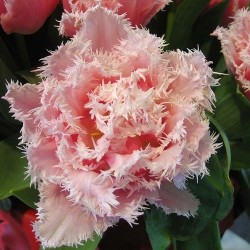 Ouderwetse "bewerkte" tulpen zijn weer helemaal in en exclusief! Een bijzonder speels effect: de bloemen zijn langs de randen gekarteld en iets lichter getint. EXCLUSIEVE TULP! Wonderlijk zacht van kleur en dubbelbloemig…