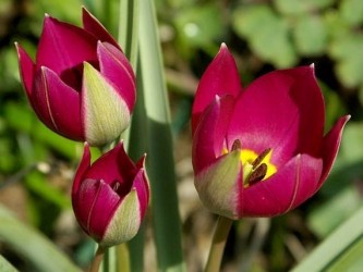 Oorspronkelijk "wilde" soorten (ook wel Tulipa species genoemd), vaak blijvertjes in de tuin, kleinere bloemen. De pittig (nagellak) roze bloemetjes worden eerst aan het oog onttrokken door de crèmewitte knopjes, deze vormen later een pittig contrast.