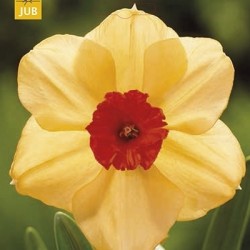 Kleinkronig: korte, kleine trompetjes. Lichtgeel met (bijna) rood cupje