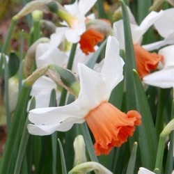 Kleinkronig: korte, kleine trompetjes. Wit met een donkeroranje tot bijna rood trompetje.