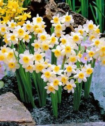 Tazetta type: geurend, winterbescherming nodig, klein kroontje, de kleinbloemige hebben tot 20 bloemetjes per steel! BIOLOGISCH GETEELDE BLOEMBOLLEN OF KNOLLEN