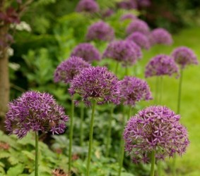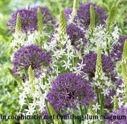 Prachtige, violetkleurige bloemetjes met groen hartje. De grote bolvormige bloeiwijzen zijn tamelijk los en staan aan stevige stelen van 60-80 cm hoog. We kunnen door grote inkoop deze bollen vrij voordelig aanbieden, waardoor elke tuinbezitter (planten in een pot kan ook) een flinke bos in de tuin kan planten!