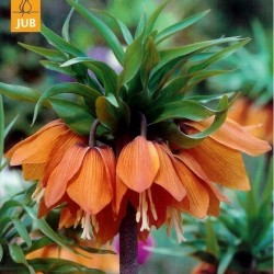 De stevige stengels hebben tot 2/3 de sierlijke kransen van glanzend groen blad en bovenin een cluster van grote klokvormige bloemen met een kuif (kroon) van schutbladeren. Bekend is de werende werking tegen mollen. Tip: omdat de bol bovenin een holte heeft waar in erg vochtige grond rotting kan ontstaan adviseren we de bollen liggend te planten. Helder oranjerode variëteit.