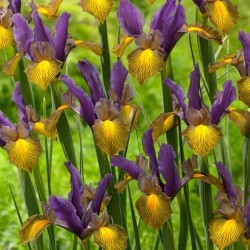 Hollandse Irissen brengen kleur in een boeket en zijn een ranke sieraad in de tuin. Ze ontvouwen zich prachtig uit de knop en geuren heerlijk met een zachte vanillegeur. Lilablauw met warmgele "lokvlek", die decoratief gestreept is.
