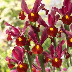 Hollandse Irissen brengen kleur in een boeket en zijn een ranke sieraad in de tuin. Ze ontvouwen zich prachtig uit de knop en geuren heerlijk met een zachte vanillegeur. De Red Ember combineert een diep bruinrode kleur met warmpaars en gele "lokvlek"..