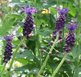 Een verrassend fraai druifje uit Midden-Europa: de bloemtrosjes beginnen zeer donkerblauw en eindigen in een kuifvormige, helderblauwe top. Fraai, speels, grappig!