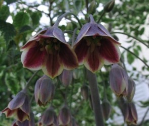 Een heerlijk bolgewas, dat weer extra populair is, sinds het in 2008 "bol van het jaar" was! Elk zonnig en halfschaduwplekje is voldoende voor deze verwante van de sieruifamilie. De hoogte is 90- 120 cm, de klokvormige bloemen hangen aan lange, afhangende steeltjes in een trosje bijeen. De kleur is fantastisch: crème-wit tot geelgroen met een sterke paarse waas. Na de bloei ontstaan decoratieve zaaddoosjes. We bieden een extra grote bolmaat aan voor nog betere bloei!