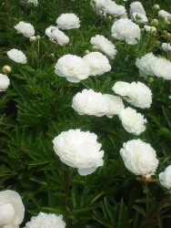 (1950) Van de witte gevuldbloemige pioenrozen de absolute TOPPER! De grote, zuiverwitte bloemen zijn volledig dubbel en staan toch op zeer stevige stengels (90cm hoog). De bloeitijd is de 2e helft van mei.