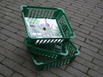 Set van 3 mandjes, rechthoekig: 25x21 cm. Bij tulpen en hyacinten kan het goed uitkomen, dat u de afstervende bollen op een andere plek zet. Plant u de bollen in deze kunststof schaaltjes en vervolgens met schaaltje en al in de grond, dan is een groepje bollen gemakkelijk te verplaatsen.