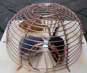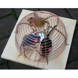 Een slim gevormd muizenvalletje met trechtervormige openingen van boven en aan de zijkant, de muis kan er in, maar niet meer er uit. Na het vangen snel de muisjes elders bevrijden door het bodemluikje open te schuiven.