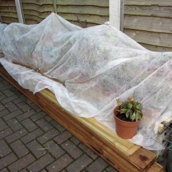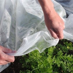 Het materiaal is gemaakt van UV gestabiliseerd Polypropyleen en kan door het lichte gewicht direct op het gewas worden gelegd (17 gram per m²). Er ontstaat onder het gewas een gunstig microklimaat, dat de warmte vasthoudt en de wind en kou (deels) buiten laat. De harde neerslag wordt verzacht, maar het vocht komt wel binnen en bij goede sluiting van de zijkanten is er goede insecten- en vogelwering. Verder kan het vlies worden gebruikt om planten in te pakken tegen strenge vorst(wind). Vaak is het aan te bevelen om eerst een hutje van bamboe om de plant heen te zetten. De breedte die we leveren: 150 cm. Op verzoek en bij grote afname (250 m) zijn afwijkende breedtes leverbaar.