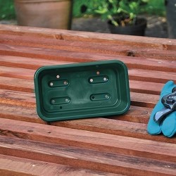 Kunststof (groen of zwart) bakje, ideale maat om in te zaaien, verspenen of stekken. De bakjes zijn voorzien van drainagegaatjes om te voorkomen dat zaaisels te nat worden. (lxbxh) 17x10x5,5cm (buitenmaat) en 15x8,5x5cm (binnenmaat). Inhoud in liter: 0,3l