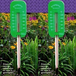 Deze thermometer meet de temperatuur in de grond: belangrijk om te controleren of de benodigde kiemtemperatuur wordt gehaald! Het bereik is 0-50°C (of 35-120°F).