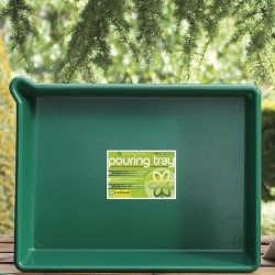 Vrij diepe, handige, waterdichte bak om zaaibakjes of potjes op te zetten. Ideaal voor gebruik bij plantenopkweek als een extra waterbuffer vereist is, of als morsen met water niet handig is. We horen ook van loodgieters en monteurs, dat het een handige opvangbak is, vooral vanwege de “lip” om de bak zonder morsen leeg te gooien! (lxbxd) 53x40x9,5cm, inhoud: 16 liter. Groen (soms zwart), onbreekbaar kunststof.