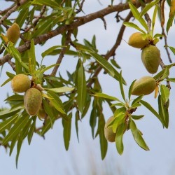 Je hoeft de oogst niet te beschermen want vogels eten de amandelen niet. Maar pas wel op voor nachtvorst tijdens de bloei in de lente. Je snoeit een Amandel (en ander steenfruit) in de zomermaanden, of anders direct na de oogst. Snoeien in de zomermaanden heeft 1 groot voordeel: je kunt zien waar vruchten hangen en je snoei daar dus op aanpassen. Snoei al te lange en hoge takken tot op 1/3 terug, plus uiteraard de gebroken, dode, zieke of kruisende takken. En aangezien je de vruchten ziet hangen kun je eventueel niet dragen takken of terugsnoeien of inkorten. Amandel en Perzik bestuiven elkaar mits ze tegelijk bloeien. We leveren geënte boompjes, onderstam St. Juliën A.