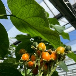 818575 BOOMTOMAAT, DWERGook wel genoemd: DWERG-TAMARILLO (Engels: Dwarf Tree Tomato)(Cyphomandra abutiloides, synoniem: Cyphomandra sibundoyensis) |