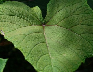Het hartvormige blad is groot (15-25 cm), dof, donkergroen met viltig, grijsbruine onderzijde. In de herfst showt het blad prachtige herfsttinten, voordat ze loslaten. De kleine, zwarte vruchttrosjes zijn (dus) niet eetbaar. Snoei de plant gerust elk jaar flink terug (uiterlijk half december of tijdens de groei) de plant heeft een enorme groeikracht! Leveringsmaandenhet gehele jaar