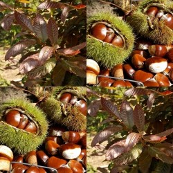 Voor deze extra sierlijke Tamme Kastanje is wat minder ruimte nodig, de hoogte is 6-8 m. Het jonge blad is diep bruinrood en verkleurt in de zomer naar donkergroen om in de herfst prschtige goudgeel te eindigen. Opvallend is ook de iets gedraaide stam. Na enige jaren kan je de eerst oogst van heerlijke tamme kastanjes verwachten!
