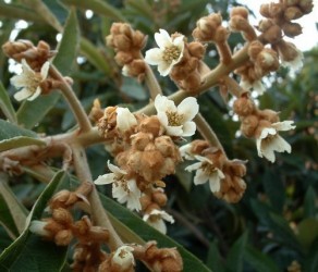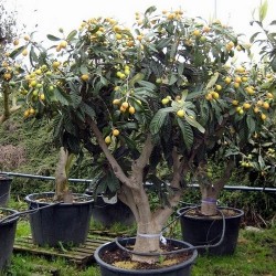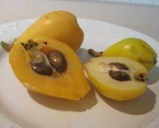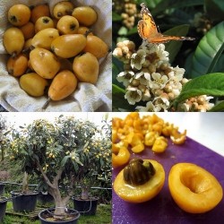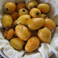 Deze tamelijk onbekende vrucht heeft zeker potentie om meer onder de aandacht te komen. De planten behoren tot de rozenfamilie en vormen een groenblijvende struik met donkergroene, behaarde bladeren. Het gaat natuurlijk om de eivormige, oranje vruchten met zeer sappig, aromatisch, zoetzuur vruchtvlees, wat enigszins doet denken aan abrikoos, perik en mango! De vrucht bevat 1-10 afgeplatte, bruine zaden, kunnen uit de hand gegeten worden of worden verwerkt tot fruitsalades, vruchtensappen, compote, consumptie-ijs en jam. In China en Taiwan worden de vruchten ingeblikt. De Loquat kan ook in het Nederlandse en Belgische gematigde zeeklimaat overleven, voor bloei moeten ze ‘s winters opgepot de kas in. De vrucht wordt hier op de markt aangeboden, maar vaak onder de foutieve benaming mispel, wat de vrucht is van Mespilus germanicus, een verwante soort. De plant komt van nature voor in het zuidoosten van China en in Japan waar hij al meer dan 1000 jaar als fruitboom wordt gekweekt. Tegenwoordig wordt de Loquat wereldwijd in de subtropen en tropisch gebergte gekweekt. (tekst bewerkt uit Wikipedia)