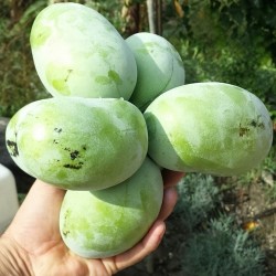 Gelukkig wordt deze, bij ons tamelijk winterharde fruitboom uit Noord-Amerika en Canada steeds bekender en populairder. De smaak van de langwerpige, geelgroene vruchten is echt exotisch en gaat richting banaan, mango en ananas en zit vol vitamines. Zo gezond, dat er serieuze aanwijzingen zijn op de voorkoming van kanker. Er zijn minstens 2 planten nodig voor kruisbestuiving. Jonge planten staan graag schaduwrijk en worden ‘s winters wat extra beschermd, later is volle zon ook prima en kunnen ze wel een pittig wintertje hebben. Hoogte uiteindelijk 2-5 m, snoeien is aan te bevelen om nog hogere groei te voorkomen! De opbouw van de boom is iets hoger dan breed, dus op den duur is een boomspiegel van 3-4 meter aan te bevelen. Houd tussen 2 bomen minimaal 4 m afstand. Na ongeveer 4 jaar zijn de eerste vruchten te verwachten, voorafgegaan in de lente door vreemd geurende, witte naar roodbruin verkleurende bloemen. Zeewind waarderen ze niet, iets zure grond (op kleigrond zorgen voor veel humus) en een mulchlaagje waarderen de bomen echter zeer. Van ziekteaantastingen is in ons klimaat nog niets bekend, maar er is nog niet veel ervaring. Deze Belgische selectie, door Dimitri Jacobs van kwekerij Zoetewei, geeft grote vruchten van rond de 300 gram. De bomen hebben een gezonde groei en de oogst zal jaarlijks rond half oktober zijn. Gebruik een ander ras als bestuiver.