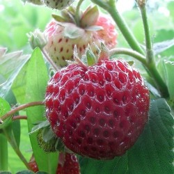 Een slimme naam voor deze Frambozenaardbei... De vruchtjes zijn vrij klein en stevig en hebben door de diepliggende pitjes een bobbelige structuur. Gek genoeg levert dit naast het uiterlijk van een framboos ook onmiskenbaar lichte frambozensmaak op! De zachte smaak is uniek en nodigt tot doorsmullen… geniet er extra van want de oogst is niet zo groot! Omdat dit ras heel weinig tot geen meeldraden heeft dient er altijd een ander ras in de buurt te staan om een goede bevruchting te krijgen.