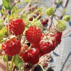 Onze collectie aardbeien bestaat voor een deel uit zeldzame oude rassen, die slechts mondjesmaat leverbaar zijn. Het kan dus zijn dat de wachttijd lang is. In juli wordt jaarlijks een nieuwe teelt door onze kweker opgepot, welke in augustus-september wordt geleverd. In april-mei kunnen we een deel van dit sortiment aanvullen. Houdt u wel rekening met portokosten voor eventuele naleveringen? Een zeer oud soort uit de Franse Alpen, dat als natuurlijk kruising is ontstaan uit de Wilde- en Heuvelaardbei. De groei is uitbundig en zeer vlak, een ideale bodembedekker dus! De 1 cm grote, rode vruchten zijn zeer aromatisch, dit zeldzame soort moet zeker behoed worden voor uitsterving!