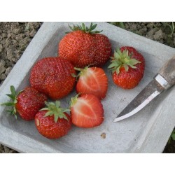 MINSTENS 1X PER JAAR VOLOP BESCHIKBAAR. De pure, ouderwetse aardbeiensmaak in een tamelijk modern ras! Middelgrote, friszoete, kegelvormige vruchten. Door de stevige structuur en goede bewaarbaarheid zeer populair bij kwekers en horeca. Een beetje suiker erbij is nodig om de zoetheid optimaal te krijgen. Uiteraard is dit ras ideaal voor jam of vruchtenshake.