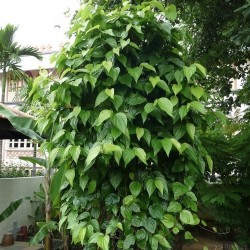 Deze pittige bladpeper is een zeer populair, opwekkend kauwproduct in Azië. Gevuld met nootjes, citroen, tabak en specerijen (kruidnagel). Er worden geneeskrachtige werkingen aan deze “betel quid” toegedicht. Deze klimmer kan ‘s zomers op een schaduwplekje naar buiten, ‘s winters als kamerplant binnen.