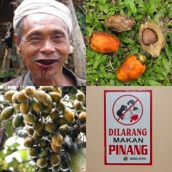 In het Verre Oosten wordt de onrijpe noot veel gekauwd. In Indonesiƫ noemt men het: het kauwen van de "Sirih-Pinang". De noot wordt in kleine brokjes gehakt en ingepakt in een stuk betelblad (niet van de betelpalm maar van de betelpeper (zie
