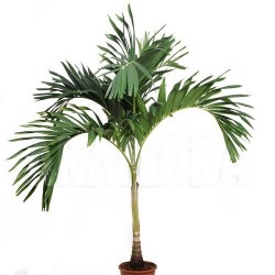 In de (Indonesische) tropen is dit een grote palm, wij moeten de plant dus (uiteindelijk) in een flinke pot telen. De bloei en vruchten ontstaan na vele jaren groei net onder de bladkruin.