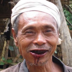 831230)) en vermengd met wat ongebluste kalk, kruidnagel en pruimtabak . Het gecombineerd gebruik met kalk versterkt het effect van de betelnoot doordat de stof areciline omgezet wordt in de werkzame stof arecaidine. De kalk is, afhankelijk van wat de omgeving te bieden heeft, afkomstig van kalkrotsen, koraal, zeeschelpen of slakkenhuisjes. Er ontstaat bij menging een rode pasta die bij het kauwen het speeksel vuurrood kleurt. Bij chronisch gebruik verkleuren de tanden rood. Na het kauwen worden de dan smakeloos geworden resten uitgespuugd. Dit zorgt voor kleine rode spuugplekken op de grond. Omdat dit een onsmakelijk gezicht is, is het kauwen van betel verboden op sommige openbare plekken. Om de bittere smaak te verfijnen wordt, afhankelijk van regio, budget of beschikbaarheid het "betelhapje" nog voorzien van soms wel tientallen andere ingrediƫnten (honing, vruchten, gemalen noten, pepermunt, salmiak, zoethout en extracten van planten). Vaak claimt de verkoper dat ook dit de werking zal versterken.