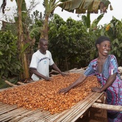 Bloeiwijze Ondanks de lange bloei, levert de cacaoboom maar 30-40 (op langwerpige meloenen lijkende) vruchten per jaar. Ze worden geplukt en vervolgens opengebroken, de cacaobonen liggen in het midden van de vrucht. Elke vrucht bevat 40-50 “bonen”, die elk ± 1 g wegen. Een gemiddelde cacaoboom levert per jaar dus 1-2 kg bonen. Deze worden met het vruchtvlees dat er nog aanzit door schimmels en bacteriën 5 dagen gefermenteerd. Hierbij loopt de temperatuur op tot 50̊C. De kiem van het zaad wordt gedood en de kleur verandert van paars naar bruin. Door het fermenteren worden de smaakvoorlopers voor de chocoladesmaak gevormd. Vervolgens worden de bonen in de zon of in drooghuizen gedroogd. Deze zijn vervolgens klaar voor de export. Geschiedenis De cacao is inheems in Midden-Amerika en het noordelijke deel van Zuid-Amerika. De Azteken verbonden cacao met Tlaloc, de god van de regen en de vruchtbaarheid. Zij dronken een cacaodrank (Xocoatl) die vaak op smaak werd gebracht met vanille, chilipeper en piment. Cacaobonen dienden bij de Azteken ook als betaalmiddel. Voor 10 bonen kon een konijn gekocht worden, terwijl men - naar verluidt - een slaaf kon kopen voor 100 bonen. De Spaanse veroveraar Fernando Cortez bracht in 1528 als eerste een grote hoeveelheid cacaobonen naar Europa. In de 17e en 18e eeuw is de cacao aangeplant in Azië, met name in Ceylon, Indonesië en Maleisië. In Zuid-Amerika verspreidde de productie zich tot in Brazilië. Ook in Afrika werden cacaobomen aangeplant, aan de Goudkust (het huidige Ghana). Een vrijgelaten slaaf bracht de bonen in 1879 vanaf een plantage op Femando-Po over naar zijn geboorteland. In 2002 was 79% van de wereldproductie afkomstig uit de landen Ivoorkust, Ghana, Indonesië, Nigeria en Brazilië. Een van de meest gebruikte insecticiden bij de verbouw van cacao in West-Afrika is lindaan (hexachloorcyclohexaan), een giftige organochloorverbinding net als DDT. Nederland heeft vanouds een belangrijke rol in de cacaohandel gespeeld. In Suriname werden cacaobomen aangeplant. Na de afschaffing van de slavernij in 1863 waren deze cacaoplantages niet lonend meer. Amsterdam is nog steeds de belangrijkste wereldhaven voor cacao, jaarlijks wordt hier circa 500.000 ton cacaobonen overgeslagen. In 1828 werd door Conrad van Houten ontdekt hoe het vet uit de bonen kon worden verwijderd, waarbij cacaopoeder en cacaoboter ontstond. Dit was de basis voor de huidige chocolade. CACAO IS NIET GEMAKKELIJK TE TELEN. GEEF ZE EEN WARME EN VOCHTIGE PLAATS, DOOR DE BEHOEFTE AAN HOGE LUCHTVOCHTIGHEID KUNNEN ER PLEKJES OP HET BLAD ONTSTAAN, KIJK DUS NIET TE KRITISCH…! HET IS DE UITDAGING VAN JOU ALS KWEKER OM ZE VERDER TE HELPEN. Leveringsmaandenoktober t/m november