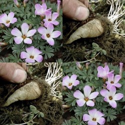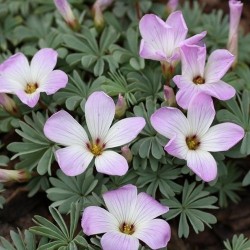 Het fraaie grijze klaverblad is in de lengte gevouwen. De lichtroze bloemetjes (met witte hartjes) knallen eruit. Ze houden van goed gedraineerde grond en groeien in het wild in het Andesgebergte (Patagoniƫ e.o.) van Chili en Argentiniƫ. De rijke bloei is van mei-augustus op 10 cm hoogte.