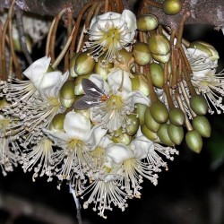 De Doerian is in de tropen (van oorsprong de Molukken) bekend en berucht! De grote bomen vormen (na bestuiving door een vleermuis) enorme vruchten met dikke stekels die naar rotte eieren stinken (H2S), maar geroosterd een lekkernij zijn. Ze worden zelfs de koning der vruchten genoemd! Doerian-ijs is dan ook heel populair. We bieden deze plant uit als curiositeit, de kans op vruchtzetting is niet groot. Doerian is een lid uit de kaasjeskruidfamilie.