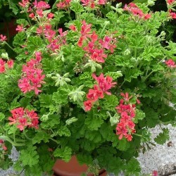 Geurgeraniums zijn een welkome aanvulling in de “beleeftuin”. Even met je handen er doorheen, even snuffelen... In een flinke pot kunnen ze ook achter de vensterbank of in de slaapkamer: ook weer met je handen er doorheen en de muggen komen niet zo snel binnen!