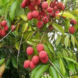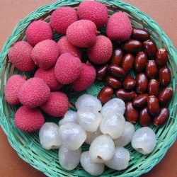 Deze tropische tot subtropische fruitsoort is inheems in China (Guangdong en Fujian). Het dunne, gebobbelde, rozerode schilletje herbergt helderwit vruchtvlees met een speciale stevige en sappige textuur en een unieke geurige, zoete smaak. In het centrum zit een middelgrote pit: het zaad. Al sinds 2000 v.Chr. is de vrucht in cultuur en in Europa kennen we de vrucht sinds 1570. Het blad van de Lychee lijkt op laurierblad, de plant is dan ook wintergroen, maar moet bij ons vorstvrij (niet te warm) overwinteren. De flinke trossen crèmekleurige bloemetjes geuren heerlijk. Kweek de boompjes in een goed gedraineerde pot met potgrond, die jaarlijks deels wordt vernieuwd en/of bemest. Na enkele jaren geduld is het goed mogelijk om vruchtgroei te krijgen. Eet 9 vruchten per dag en je hebt je dagelijkse portie Vitamine C binnen!