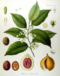 832150 MUSKAATBOOMook wel genoemd: NOOTMUSKAATBOOM (Engels: Nutmeg Tree)(Myristica fragrans) |
