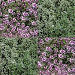 Zilvergroen met een wit randje en lilaroze bloemtrosjes: dat typeert dit naar citroen geurende en naar tijm en citroen smakende frisse plantje.